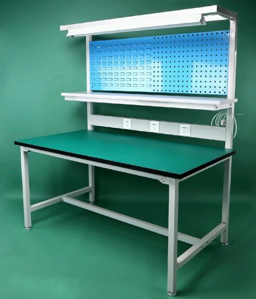 面板:采用优质防静电胶皮全覆盖桌面,戴育防静电桌面通过了《国家电子行业标准SJ/T10694-2006规定》的点对点电阻防静电测试。防静电胶皮厚2mm。面板采用三聚氰胺聚合板,50mm的加厚桌面可定制;