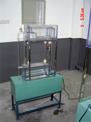 主要配置:防腐循环液体泵,PVC板蓄水箱,有机玻璃增压系统,有机玻璃压强传递系统,有机玻璃受压系统及角铁支架等。
