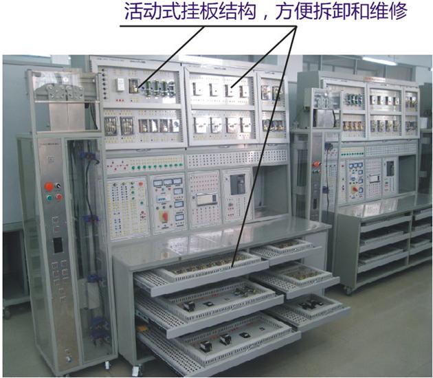 (4)继电器控制方式的交流单速与交流双速电梯控制系统,用于学生对多种形式电梯的继电器控制系统进行线路连接、故障分析与检修等实操训练。