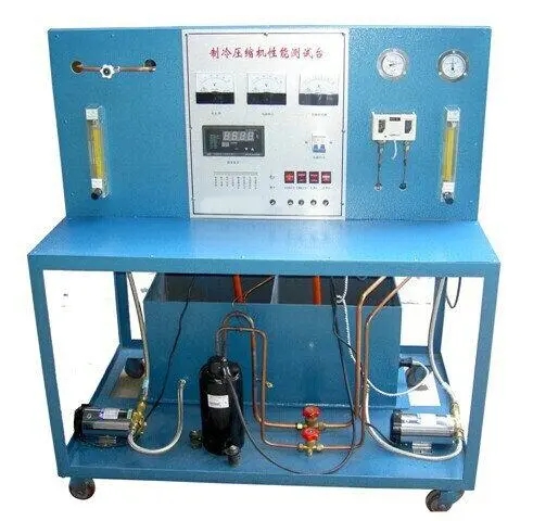 “制冷压缩机性能测试实训装置”,配备全封闭式制冷压缩机、冷凝器、蒸发器等制冷系统真实部件,并设有智能温度调节仪、流量计、压力表、电压表、电流表等测量仪表。不但能开设制冷压缩机性能参数的测定实训,还能进行制冷循环基本原理的演示实训。适用于职业院校制冷专业相关课程的教学实训。