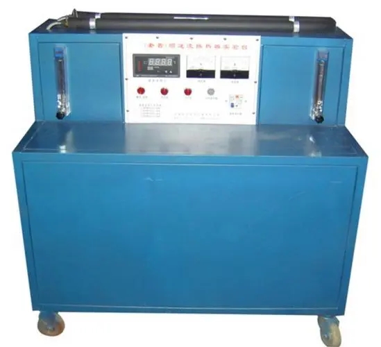 电热加热器水箱,套管换热器,不锈钢冷、热原水箱,玻璃转子流量计,顺、逆流管阀,加热由固体调压??槲藜兜鹘?,由8路万能信号输入巡检仪显示的温度测试系统等。