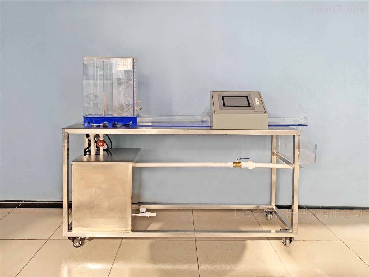4、手控流量调节阀门,双向配置LED泛平面片光源,有机玻璃流道,彩色有机玻璃机体,显示屏,亚光黑后罩,可调掺气装置。