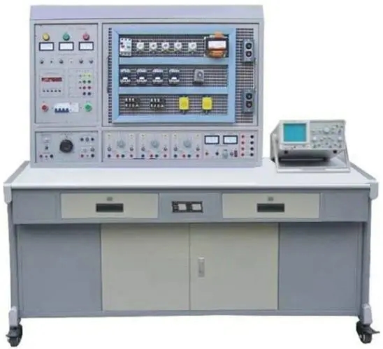 四、实训操作桌:铁质双层亚光密纹喷塑,桌面为防火、防水、耐磨高密度板,设有抽屉和元件储存柜,结构坚固、造型美观大方。