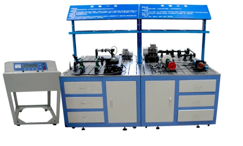 该实验台系统是由带传动,链传动,支承,制动器,动载荷组成的一个复杂机械系统。该实验台可对在不同工作条件下工作的机械部分的性能参数进行检测,数据可通过液晶显示屏显示,还通过计算机实现了各机械参数的可视化(适时变化曲线)。实验台综合性强,系统完整性好,便于教师指导实验。