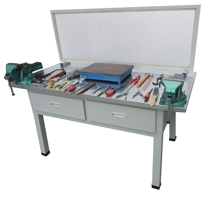 本公司生产钳工实验室设备根据教学要求与多家工厂共同开发生产,该产品配备的钳工工具通用化,标准化和专用化,可提高学生的操作技术和动手能力。钳工大多是在钳工台上用手工工具操作,对工件进行加工。手工操作的特点是技术性强,加工质量的好坏主要取决于操作者技术水平的高低,它的工作范围较广,具有万能性和灵活性的优势且不受设备、场地等条件的限制,因此凡是采用机械加工方法不太适宜或难以进行机械加工的场合,通常由钳工来完成,尤其是机械产品的装配、调试、安装和维修等更需要钳工,所以说钳工不仅是机械制造工厂中应用最广泛的工种之一,因此钳工实验室设备也是各大院校,技校不可缺少的实训教学产品。