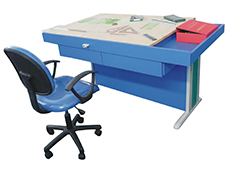 多功能实用绘图桌固定绘图桌支架采用钢架结构,桌面板采用东北优质加厚椴木材料的1号绘图板,并可调节倾角0°-85°,桌面下部有储物隔板,可以放置书包、文具和图纸等物品,牢固耐用,适用于机械制图绘图和绘画专业,在院校内实用和经济的一款多功能和升降绘图绘画桌,有较强的多种行业和课程的兼容性和普及性。