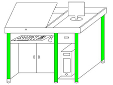 主要功能:桌面可调节倾角、桌子侧面可放置仪器、工具,下面抽屉供放学习资料、工具书等。