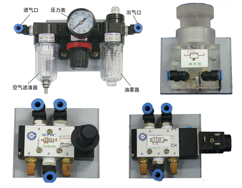 (一)气动元件配备(都固定在元件配置板上):