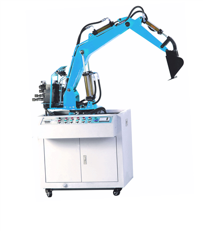 3、挖掘机械按实物比例缩小的全金属结构,实验时启动液压系统根据实验要求模以操作机械进行工作。