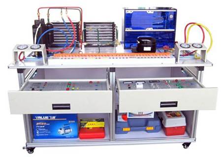 现代制冷与空调系统技能实训装置是专门为职业院校制冷类专业而研制的制冷制热实训设备,根据制冷制热类行业中空调与冰箱维修技术的特点,针对空调和冰箱的电气控制以及制冷系统、电气控制系统、系统调试、故障诊断等特点进行设计。强化了学生对空调冰箱系统管路的安装与维修系统调试等的等的综合职业能力。本装置由空调系统??椋湎低衬??,电源及仪表???,空调电气控制???,冰箱电子温控电气控制模块,冰箱智能温控电气控制??榈茸槌?。通过设备进行项目训练,能提高学生的动手操作能力,计划组织能力,制冷系统的调试安装能力,电气控制电路维修能力等是现代制冷制热技能实训的必要工具。